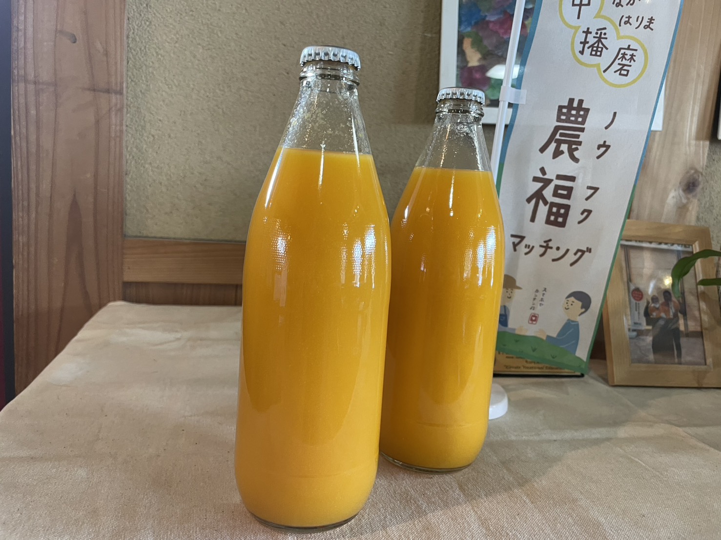 今回、私たちが自信を持ってご紹介するのは、ようやく完成した「情熱みかんジュース」です。私たちの農園で、農薬や化学肥料を一切使わずに育てた温州みかんのみを贅沢に使用しました。 数量限定の製造で、みかん本来のコクと自然な甘みがギュッと凝縮されています。お子様からご年配の方まで安心してお飲みいただける自慢の逸品です。会場では、1杯ごとでの販売から始めようと思っていますので、今後ボトルでのご購入を検討いただける方は是非1度お試しください。